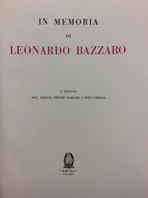 IN MEMORIA DI LEONARDO BAZZARO. - I nipoti Ada, Ersilia, Ettore Bazzaro e Nino Gervasi.