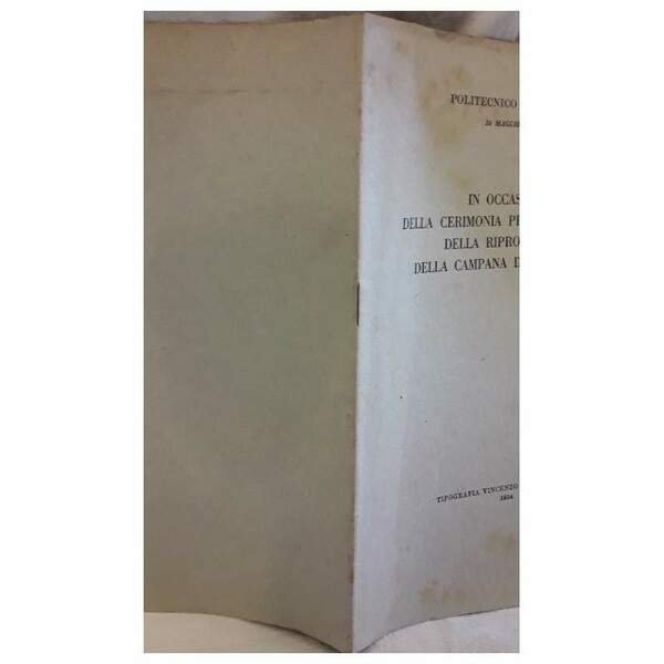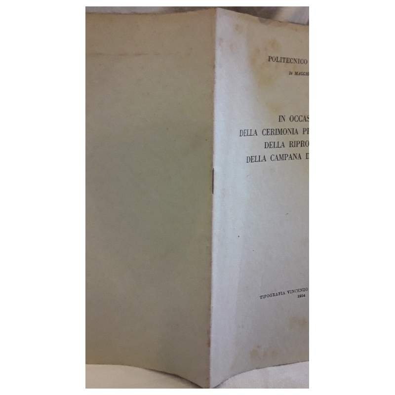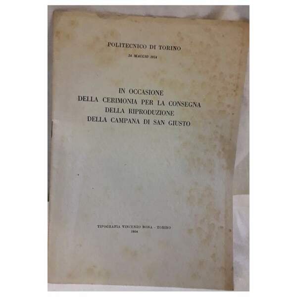 IN OCASIONE DELLA CERIMONIA PER LA CONSEGNA DELLA RIPRODUZIONE DELLA CAMPANA DI SAN GIUSTO(1954) | Libros antiguos y modernos | Politecnico di Torino