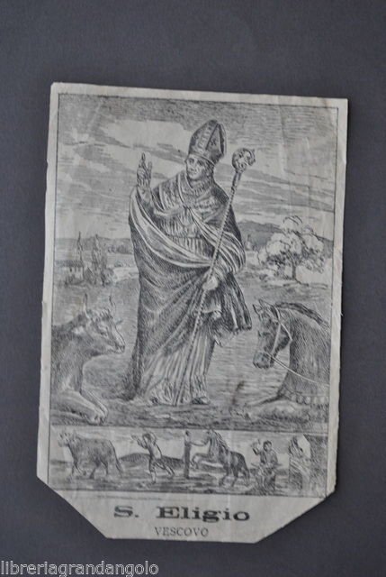 Vedere la descrizione dettagliata Incisione popolare S. Eligio Vescovo" Senza dati, ma metà 1800 circa. Dimensioni: 17,5x11,5 cm. Condizioni di conservazione Esemplare in buono stato di conservazione con leggere tracce del tempo. Taglio degli angoli inferiori a 45°. Pieghette. Minimi strappetti ai margini. Rara immagine popolare di S. Eligio illustrata su due registri. Protettore dei maniscalchi e venerato a Nocera Inferiore. Per altri volumi e documenti su questo e altri argomenti visitate il nostro negozio "Libreria Grandangolo" Data l'importanza delle 5 stelle rilasciate durante l'assegnazione del feedback, invitiamo tutti gli acqirenti, se soddisfatti del loro acquisto, a rilasciare tutte le 5 stelle. La mancanza anche solo di una stella illuminata è molto lesiva per noi venditori professionali. Grazie! CONDIZIONI DI VENDITA Spedizione Fino a 5 kg piego di libri raccomandato, oltre i 5 kg pacco postale. Si ricorda che l'imballo viene eseguito con la massima cura. La merce viene spedita a pagamento avvenuto e viaggia a rischio e pericolo dell'acquirente. Per maggiori informazioni vedi la pagina SPEDIZIONI del nostro negozio. Ritiro diretto Siamo disponibili per il ritiro diretto a Modena e a Milano. Per gli indirizzi delle sedi vedi la pagina DOVE SIAMO del nostro negozio. Acquisti multipli Se si acquistano più libri, la spedizione si paga una sola volta, purché si rispettino gli scaglioni di peso. Estero / Foreign For international shipment, please contact us. Metodo di pagamento Pay Pal, bonifico bancario, versamento postale (cc/p, vaglia o altro). La spedizione avverrà entro i primi 4 giorni lavorativi dopo la conferma di avvenuto pagamento. Si emette ricevuta fiscale e a richiesta fattura. Il pagamento deve essere effettuato entro 7 giorni lavorativi dalla data di acquisto, trascorsi i quali l'oggetto sarà rimesso in vendita. Feedback Viene rilasciato dall'acquirente dopo il ricevimento di quanto acquistato. Data la sua importanza, vi invitiamo a leggere il breve testo della pagina FEEDBACK del nostro negozio. Pertanto, in caso di qualsiasi problema, non esitate a contattarci. Diritto di recesso L'acquirente ha il diritto di restituire l'oggetto entro 14 giorni ed essere rimborsato, escluse le spese di porto e imballo. L'oggetto deve essere restituito, dopo previa comunicazione, imballato e nelle medesime condizioni di come era all'origine. Creato da Turbo Lister Strumento gratuito per mettere in vendita i tuoi oggetti. Metti in vendita i tuoi oggetti in modo facile e veloce e gestisci le inserzioni in corso. "