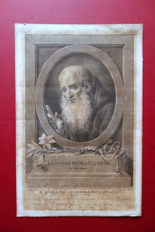 Incisione Beato Bernardo da Offida Cappuccini Mallerini Campanella '800
