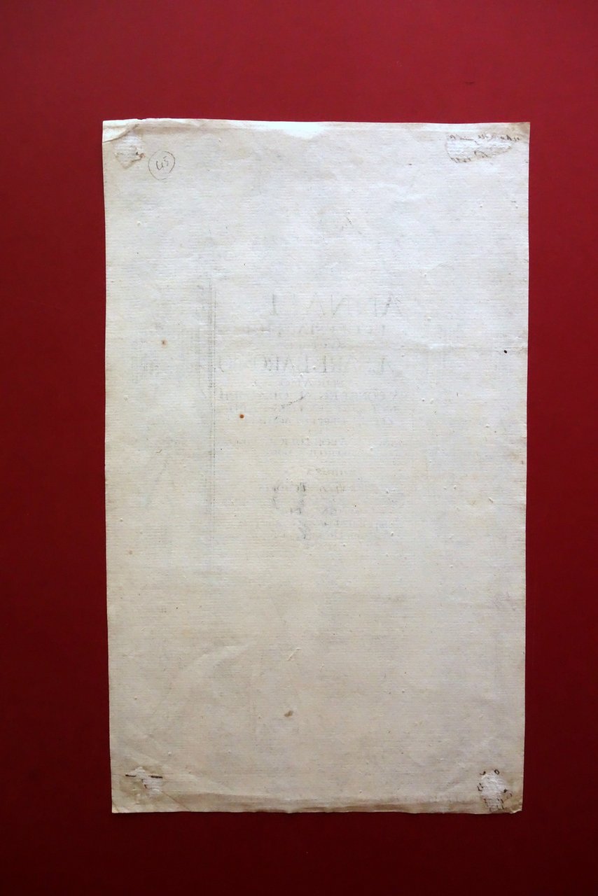 Incisione su rame (frontespizio di seicentina), Annales Ecclesiastici auctore Cesare Baronio Sorano Ex Congregat. Oratorii S. R. E. Presbytero Card. Tit. SS. Nerei et Achillei et Sanctae Apostolicae Sedis bibliotecario tomus V [.] - bellissimo frontespizio inciso di antica opera a stampa 1601 Sumptibus Ioannis Gymnici - Antonii Hierati Coloniens[is], Moguntiae 1601; bellissimo frontespizio di opera stampa finemente inciso in b/n; retro bianco. Cm 31x19. Condizioni di conservazione Condizioni pi√π che buone con minimi segni del tempo, margini leggermente rifilati, trascurabili accenni di foxing; al retro dei quattro angoli piccole abrasioni dovute a precedente applicazione su supporto cartaceo. SC03.D19382 N "