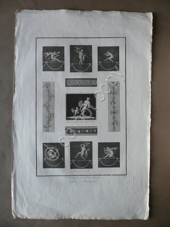 Incisione, Peintures d'Hercolanum dessiné par Paris Gravé par Cheffard Dessiné par Paris, Gravé par Cheffard, s.d. (primo Ottocento circa), bella serie di incisioni in b/n su carta, cm 35,5x26. Condizioni di conservazione Esemplare in buone condizioni con qualche piccola lievissima brunitura, margini e angoli con alcune piccole irregolarità e poche lievi tracce di pieghette. SC03.D9569 N F bis