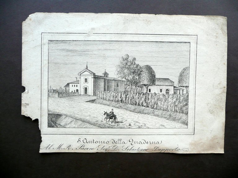Incisione Popolare S. Antonio della Quaderna Medicina Budrio Bologna Met‡ '800