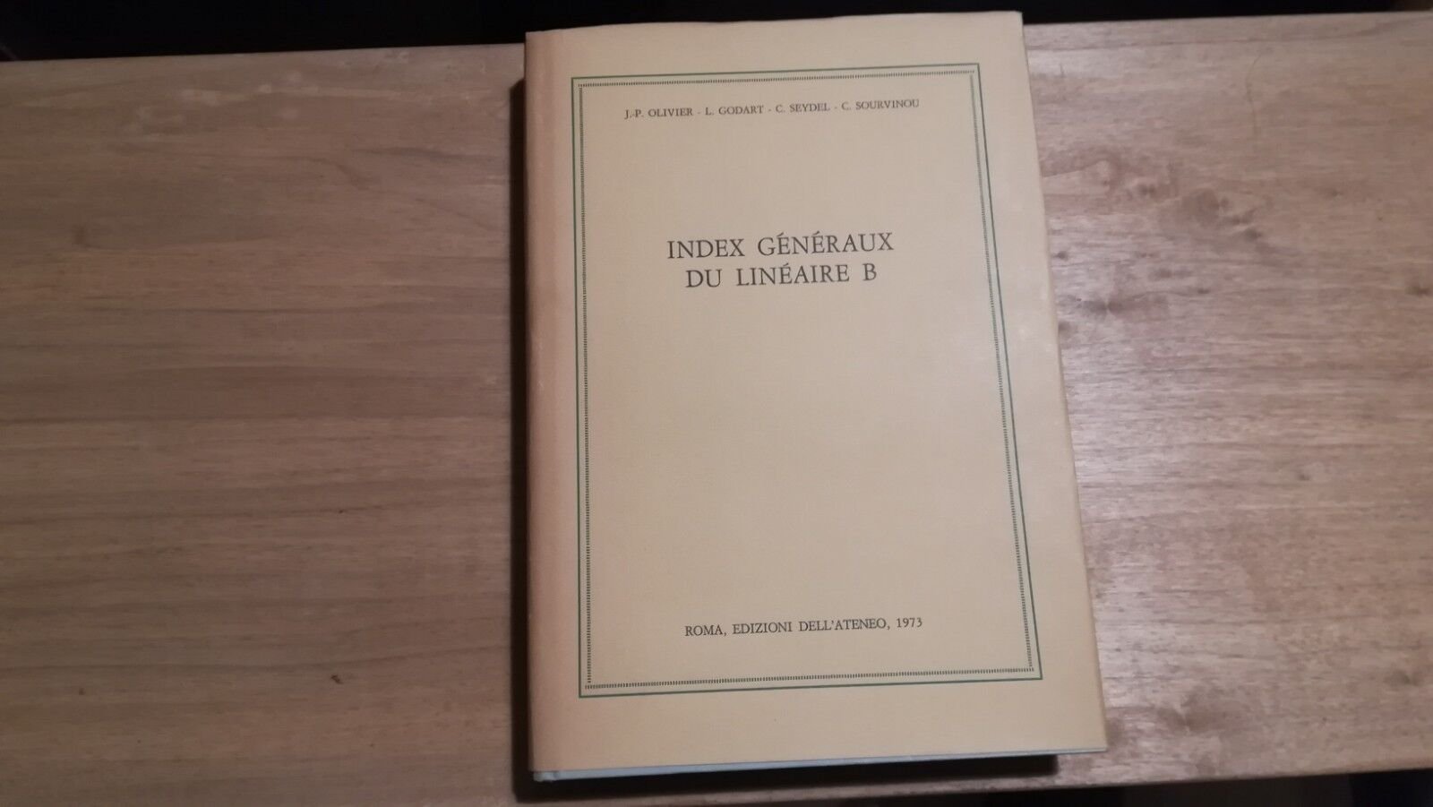 Index Gйnйraux du linйaire B Edizioni dell'Ateneo - Prima edizione 1973 Libro in ottime condizioni, minimi segni del tempo. Non esitate a contattarci per altre foto o richieste. Saremo lieti di soddisfare ogni vostra esigenza.