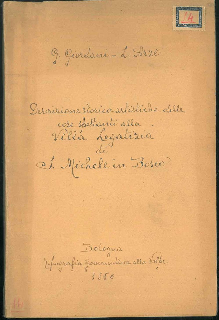 Indicazione storico-artistica delle cose spettanti alla Villa Legatizia di San Michele in Bosco già Monastero de' RR.PP. Olivetani. Monumento fra i più celebri suburbani di Bologna