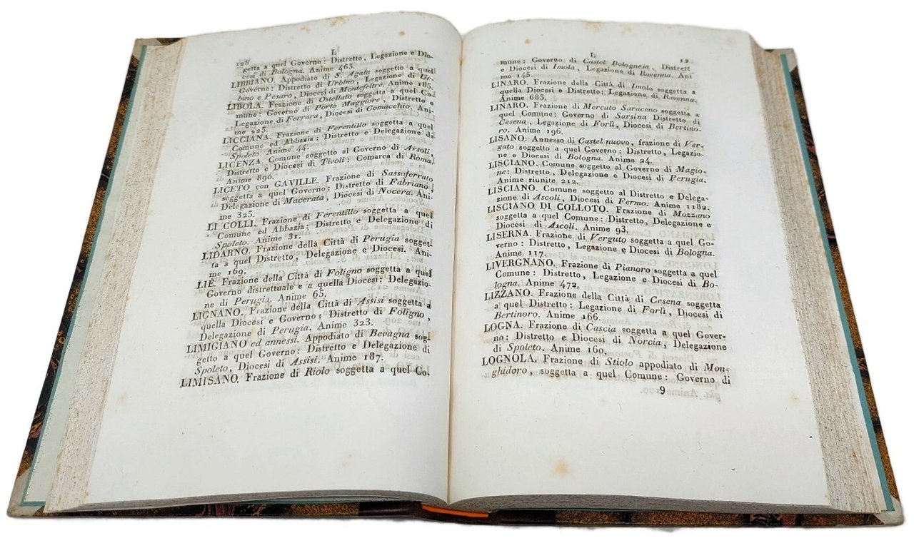 >in-8, pp. 400, legatura del tempo m. pelle, tit. e fregi oro al dorso. Prima ed unica edizione, rara. Repertorio nato dalla ''ricerca diplomatica e storica e geografica (o meglio una delle solite quistioni bizantine!) per determinare i veri confini del cosiddetto Patrimonio di S. Pietro'' (Lozzi). Bell'esemplare, sporadiche fioriture più pronunciate ai primi ff. Lozzi II, 3779 (ediz. 1829).