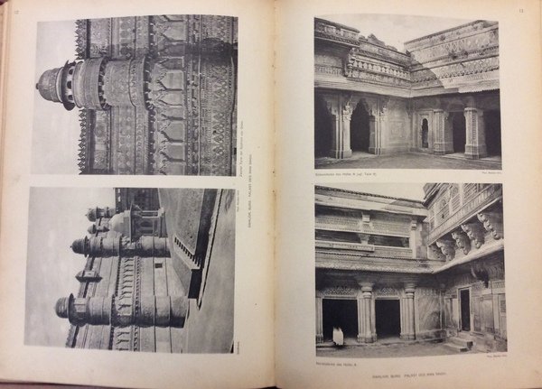 In-4 gr., tela editoriale, decorazioni e titolo oro al piatto e al dorso, pp. (6),104,(2), con una importante documentazione iconografica di 36 figure nel testo e 176 tavole in bianco e nero fuori testo, ciascuna con 2 o più illustrazioni fotografiche e disegni (piante e prospetti) di palazzi, abitazioni familiari, etc. Opera fondamentale sull'arte edilizia profana dell'India, ordinata storicamente e geograficamente. Esemplare ben conservato.