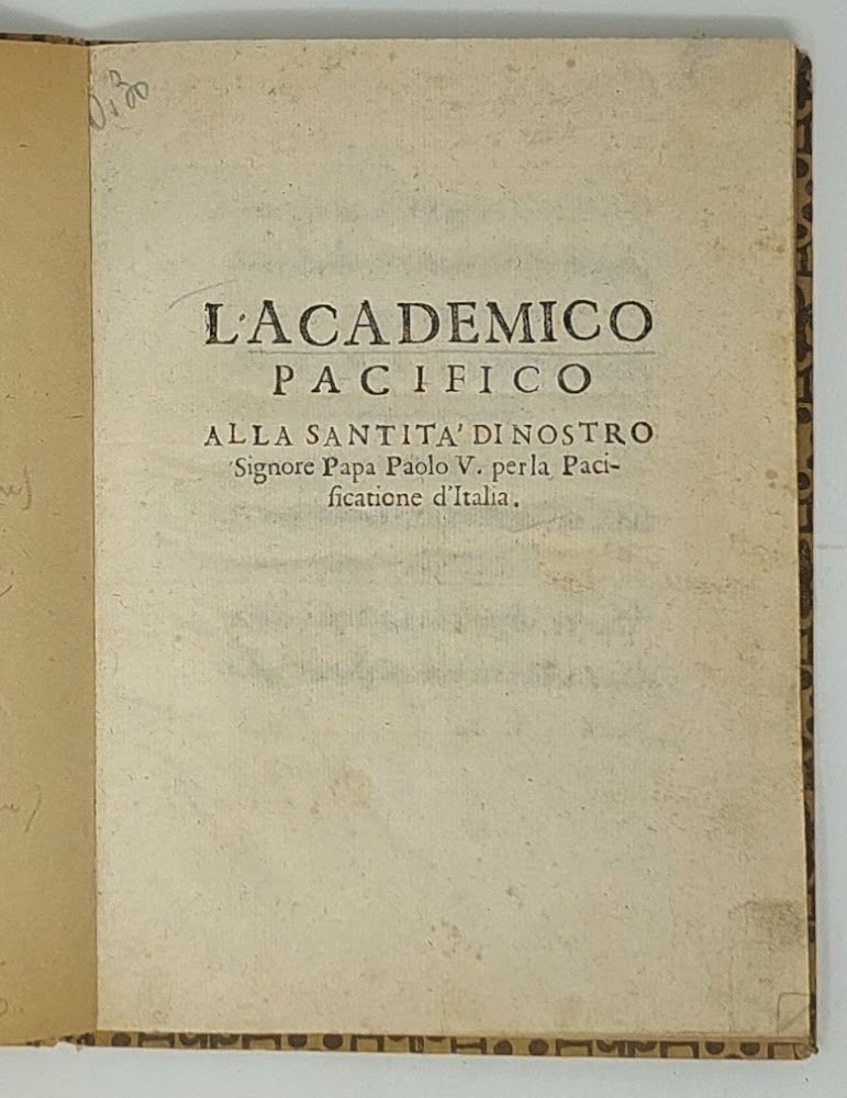 Insieme di opuscoli: L'Academico Pacifico alla santita' di nostro signore papa Paolo 5. per la pacificatione d'Italia. Alla santita di nostro signore papa Paolo 5. canzone. A principi christiani.