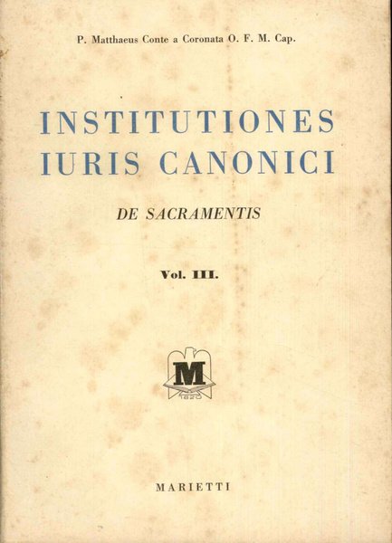 Institutiones iuris Canonici. De Sacramentis Vo. III°
