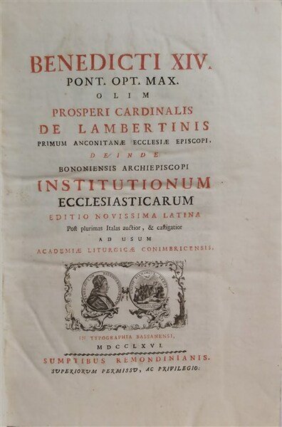 INSTITUTIONUM ECCLESIASTICARUM editio novissima latina post plurimas Italas auctior & castigatior ad usum Academiae Liturgicae Conimbricensis.