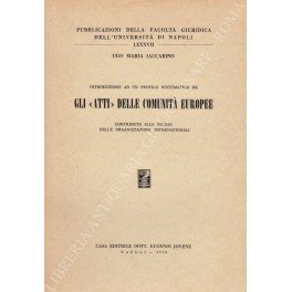 Introduzione ad un profilo sistematico de gli Atti" delle Comunità Europee. Contributo allo studio delle organizzazioni internazionali" | Libros antiguos y modernos | Iaccarino Ugo Maria