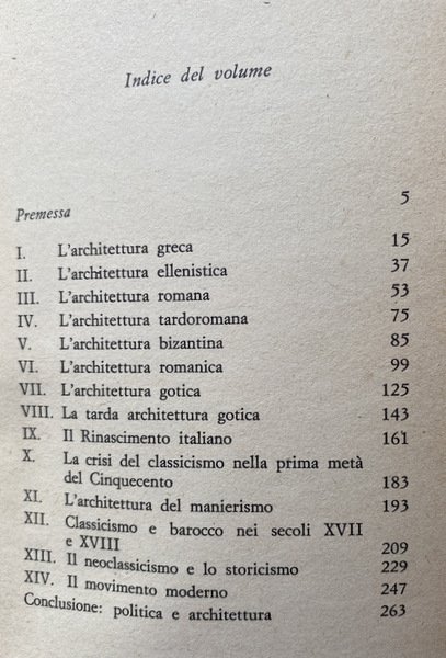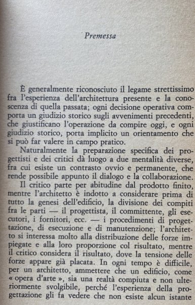 Soggetti: Architettura, Progettazione, Urbanistica, Storia, Storici, Filosofia, Scienze delle costruzioni, Antichità, Classicismo, Antica Grecia, Arte, Stili architettonici, Impero romano, Roma, Rinascimento, Cultura Rinascimentale, Opere architettoniche, Armonia, Materiali, Edifici religiosi, Templi, Iconografia, Libri illustrati, Manuali, Mappe, Piante, Saggistica, Collezionismo, Studi culturali, Libi Vintage Fuori catalogo, Libri usati come nuovi, Illustrazioni, Revisionismo, Critica, Interpretazione, Paradigmi, Ellenismo, Gotico, Romanico, Bizantino, Crisi, Barocco, Storicismo, Modernità, Movimento moderno, Politica, Committenze, Intellettuali, Architetti illustri, Innovazione, Tecnica, Tecniche, Forme, Spazio, Calcolo, Razionale, Razionalismo, Leon Battista Alberti, Vitruvio, Cupola, Brunelleschi, Antonio da San Gallo, Giorgio Vasari, Bramante, Mecenatismo, Corti, Michelangelo Buonarroti, Raffaello, Peruzzi, Leonardo da Vinci, Ghiberti, Design industriale, Anni Settanta, Anni Sessanta, Novecento, Fascismo, Monumenti, Proletariato, Modernismo, Strutturalismo, Brutalismo, Futurismo, Avanguardie artistiche, Influenze culturali, Prospettiva, Abitazioni, Funzione civile, Funzionalismo, Tempo libero, Marxismo, Rivoluzione indutriale, Partenone, Agrigento, Paestum, Colonne, Luce, Curvature, Basiliche, Chiese, William Morris, Gropius, Juvarra, Bernini, Wright, Alvar Aalto, Zippelius, Priene, Bruno Zeri, Parigi, Berlino, Roma, Le Corbusier, Paolo Uccello, Medioevo, San Marco, Venezia, Letture, San Pietro, Vaticano, Santa Maria in Fiore, Scuola di Weimar, Bauhaus, Architecture, Design, Town planning, History, Historians, Philosophy, Construction sciences, Antiquities, Classicism, Ancient Greece, Art, Architectural styles, Roman empire, Rome, Renaissance culture, Architectural works, Harmony, Materials, Religious buildings, Temples, Iconography, Illustrated books, Manuals, Maps, Plants, Non-fiction, Collecting, Cultural studies, Books out of print, Used books as new, Illustrations, Revisionism, Criticism, Interpretation, Paradigms, Hellenism, Gothic, Romanesque, Byzantine, Crisis, Baroque, Historicism, Modernity, Modern movement, Politics, Clients, Intellectuals, Famous architects, Innovation, Technique, Techniques, Forms, Space, Calculation, Rational, Rationalism, Dome, Patronage, Courts, Industrial design, Seventies, Sixties, Twentieth century, Fascism, Monuments, Proletariat, Structuralism, Brutalism, Futurism, Artistic avant-garde, Cultural influences, Perspective, Homes, Civil function, Functionalism, Leisure, Industrial revolution, Parthenon, Paestum, Columns, Light, Curvature, Basilicas, Churches, Paris, Berlin, Rome, Middle Ages, Venice, Readings, Schools, Vitruvius