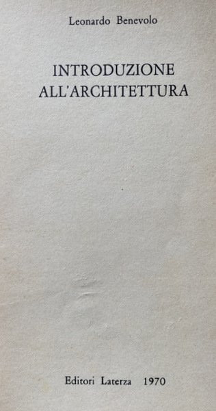 INTRODUZIONE ALL'ARCHITETTURA | Libros antiguos y modernos | Leonardo Benevolo