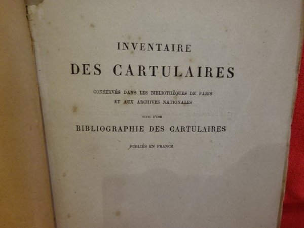Inventaire des Cartulaires conservés dans les Bibliothèques de Paris et aux Archives Nationales, suivi d'une Bibliographie des Cartulaires publiés en France depuis 1840.