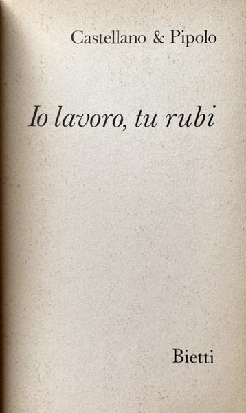 IO LAVORO, TU RUBI | Libros antiguos y modernos | Castellano & Pipolo (Franco Castellano, Giuseppe Moccia)