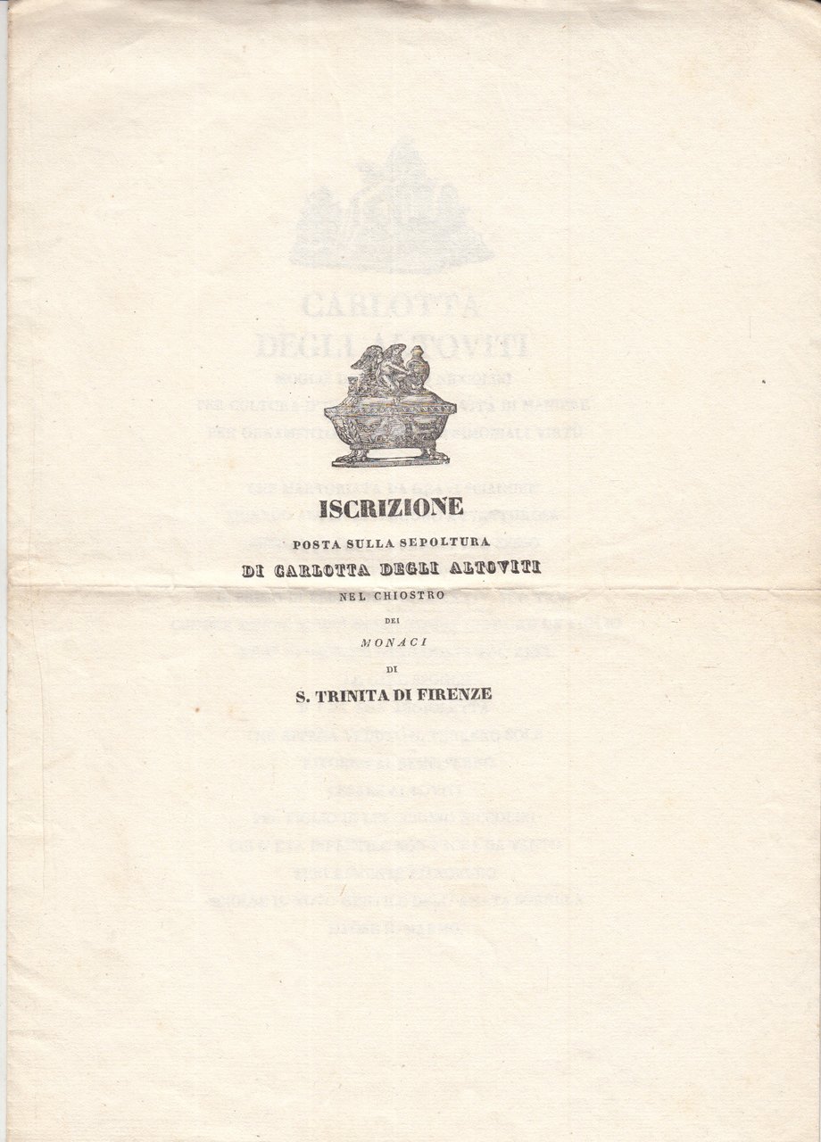 Iscrizione Posta Sulla Sepoltura Di Carlotta Degli Altoviti Nel Chiostro Dei Monaci Di S. Trinita Di Firenze | Libros antiguos y modernos |