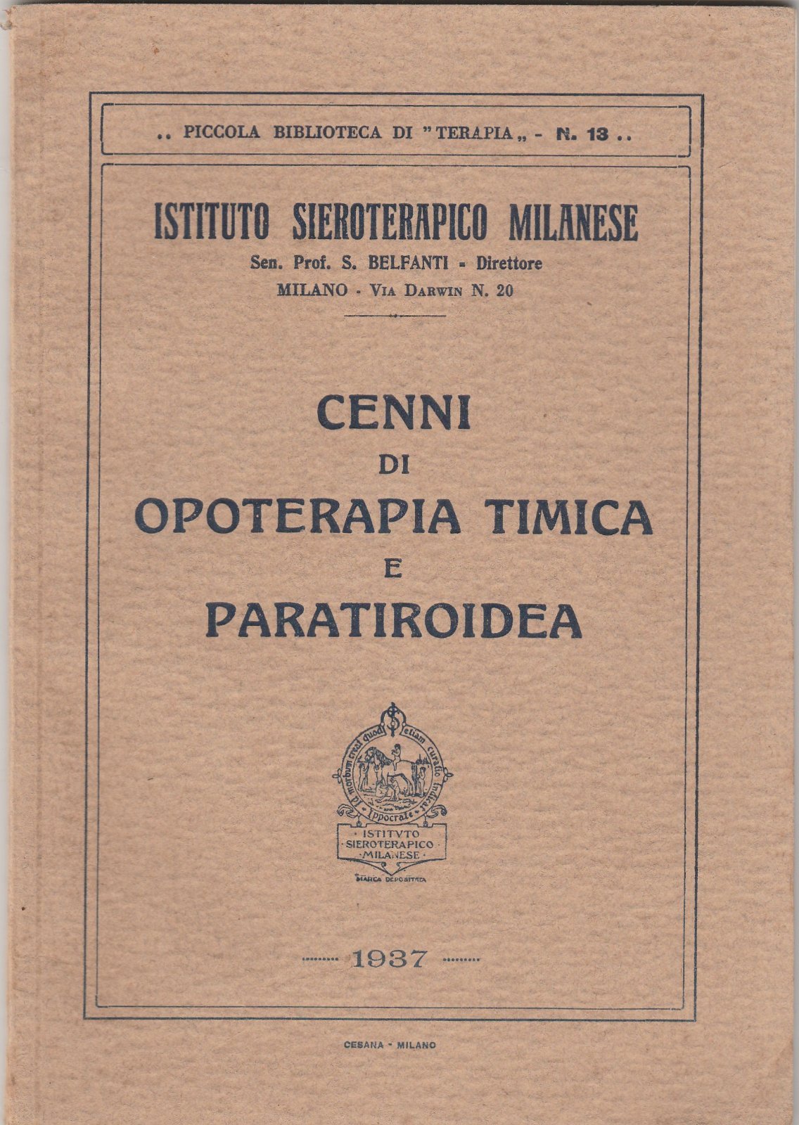 Istituto sieroterapico Milanese Cenni di Opoterapia timica e Paratiroidea 1937