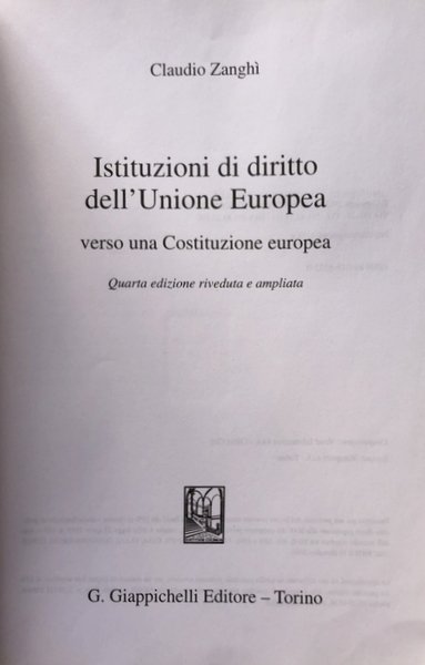 ISTITUZIONI DI DIRITTO DELL'UNIONE EUROPEA: VERSO UNA COSTITUZIONE EUROPEA | Libros antiguos y modernos | Claudio Zanghì