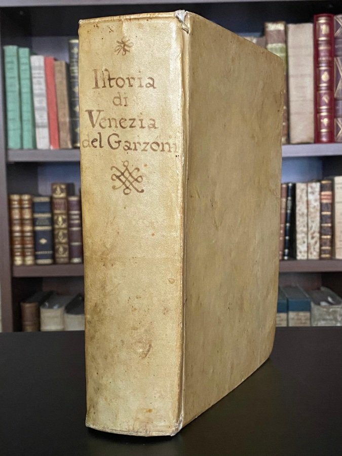 In-8° (cm. 22,4), legatura coeva in piena pergamena con titolo anticamente manoscritto al dorso (lievi tracce d'uso), tagli spruzzati in blu; pp. [8] 778 [42] in buono stato (lievi fioriture sparse). Seconda edizione, dedicata al «serenissimo principe Luigi Mocenigo, doge di Venezia, ed all'eccelso Consiglio dei Dieci». «Storia degnissima di lode, mostrandosi l'autore veritiero ed imparziale» [Cicogna 78]. Cfr. Graesse III, 32. Marca tipografica al frontespizio raffigurante la fenice che risorge dalle fiamme con il motto «Post fata resurgo»; eleganti testatine e capilettera silografici. Antico Ex libris e firme depennate al margine del frontespizio. Buon esemplare. (SH5)