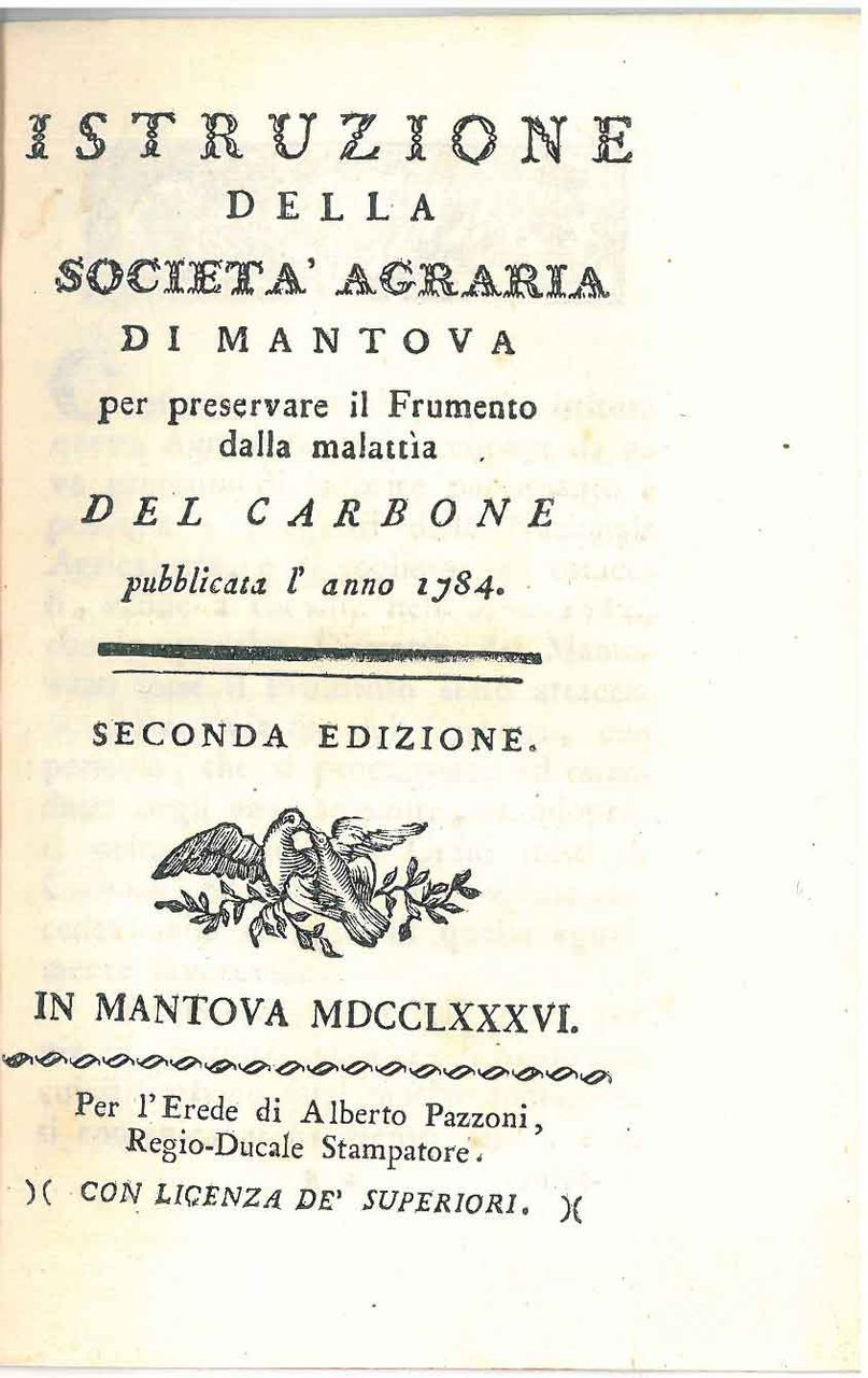 Istruzione della società agraria di Mantova per preservare il frumento dalla malattia del carbone pubblicata l'anno 1784. Seconda edizione