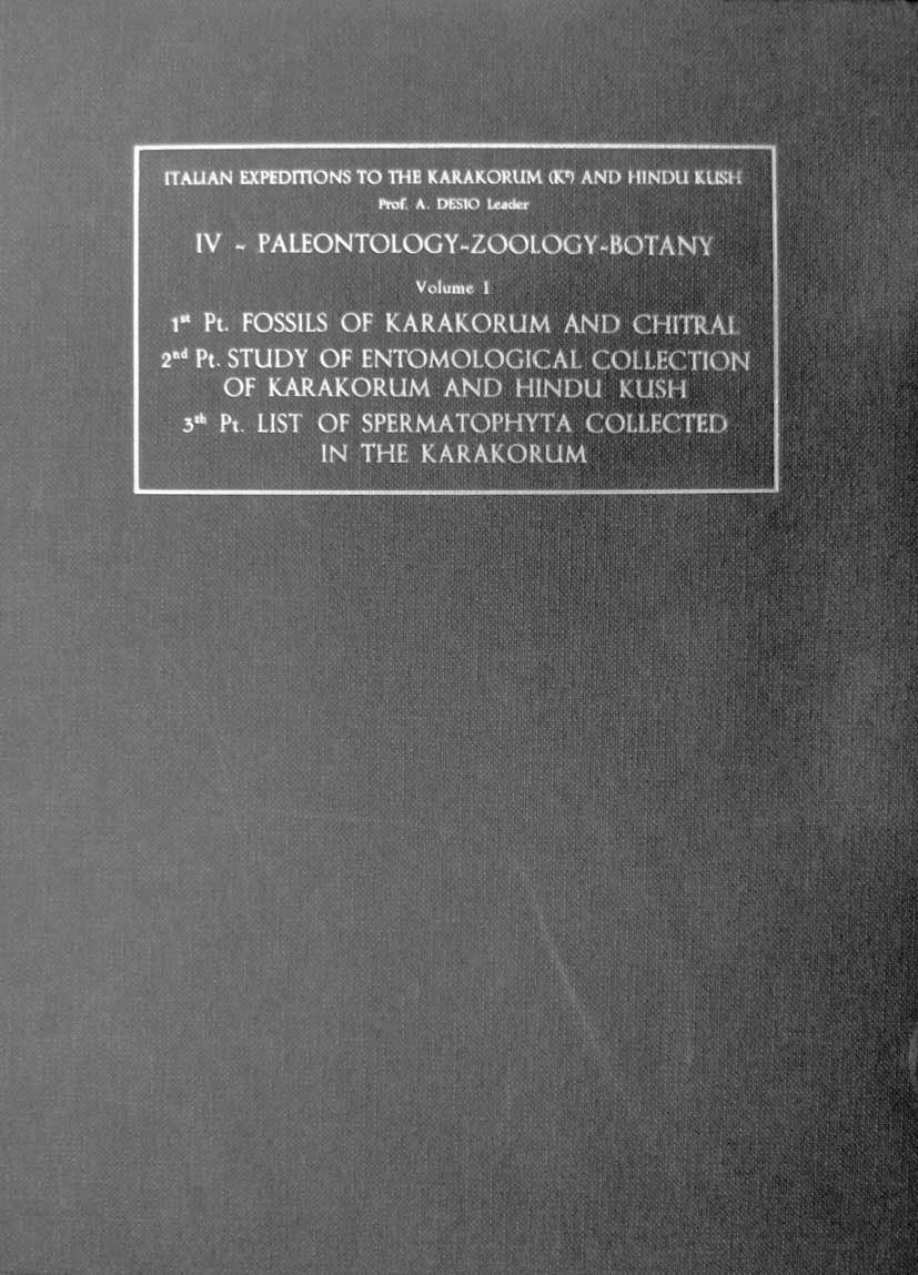 In-8 gr., complessivi 9 volumi, tela editoriale. L'opera è così composta:- 1° "Geography" - p. I. Geographical features of the Karakorum, by A. Desio - p. II. Meteorological observations of Desio's 1954 expedition, by F. Petrucco - p. III. Geodetic and topographic survey of Desio's 1954 expedition, by F. Lombardi, pp. XVII,158, con 53 figg. nel testo, 15 tavole in bianco e nero fuori testo e 4 carte geografiche più volte ripieg., inserite in una tasca alla fine del volume.- 2° "Geophysics" - Geophysics of the Karakorum, by A. Marussi, pp. XVII,242,(2), con 55 figg. nel testo e 10 tavole fuori testo.- 3° "Geology - Petrology" in 4 volumi:Vol. I: Geology and petrology of Haramosh-Mango Gusor Area, by. B. Zanettin, pp. XVI,305,(3), con 11 figg. nel testo, 3 illustrazioni fotografiche in bianco e nero (in 1 tav. a doppia pag.) e 21 tavole in bianco e nero fuori testo, ciasc. con 4 figg. Vol. II: Geology of the Baltoro basin, by A. Desio and B. Zanettin, pp. XX,308,(3), con 74 figg. nel testo, 8 illustrazioni fotografiche in bianco e nero (in 2 tavole) nel testo e 43 tavole fuori testo, ciasc. con 1 o 2 belle foto di ghiacciai, in bianco e nero.Vol. III: Geology of Central Badakhshan (North-East Afghanistan) and Surrounding Countries, by A. Desio, pp. XVI,628,(2), con 44 figg. nel testo e 16 tavole in bianco e nero fuori testo Al fine due appendici - Paleontologica e Petrografica - con 5 figg. nel testo e 7 tavole in bianco e nero, ciasc. con 2/4 figg. + 4 tabelle e 1 carta geologica a colori, più volte ripieg., inserite in una tasca al risg.Vol. IV: Geology of the upper Shaksgam Valley, North-East Karakorum, Xinjiang (Sinkiang), by A. Desio, pp. XVIII,196,(2), con 43 figg. nel testo, 34 tavole in bianco e nero fuori testo ed 1 cartina a colori più volte ripieg., inserita in una tasca alla fine del volume.- 4° "Paleontology - Zoology - Botany" in 2 volumi:Vol. I: p. I. Fossils of Karakorum and Chitral - p. II. Results of the study of the entomological collection of the Karakorum and Hindu Kush (1954-1955) - p. III. List of Spermatophyta collected in the Karakorum above 4000 m. (1953-1954), pp. IX,(3),343, con 16 figg. nel testo e 43 tavole in bianco e nero fuori testo.Vol. II: Fossils of North-east Afghanistan (Carboniferous, Triassic, Jurassic) - Cretaceous and Palogene fossils, pp. IX,(3),240, con alc. figg. nel testo e 41 tavole in bianco e nero fuori testo.- 5° "Prehistory - Anthropology" - Prehistoric Research in Northwestern Punjab / Anthropological Research in Chitral by P. Graziosi, pp. VIII,249, con figg. nel testo e 153 tavole in bianco e nero fuori testo.Esemplare in ottimo stato.
