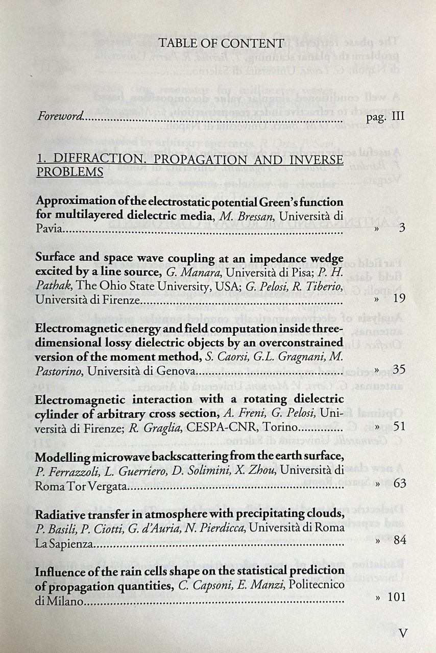 Soggetti: Papers Documenti scientifici Elettromagnetismo Articoli Inglese Università Ricerca Aziende High Tech Diffrazione Propagazione Problemi Inversi Antenne Componenti Microonde Fotonica Misure Compatibilità Bioelettromagnetismo Sperimentali Scienze applicate Convegni Congressi Capri Bava R. Palumbo P. Corona G. Schirinzi Ingegneria Elettronica Scientific meeting Applied electromagnetics research Headings Diffraction Propagation Inverse Problems Antennas Microwave Components Photonics Measurements Compatibility Bioelectromagnetics Universities Theoretical experimental University Electronic Engineering Russo Savarese Savi Scaglione Scarfi Scheggi Schena Solimini Tamburello Tascone Tiberio Tinè Tognolatti Vatalaro Vecchi Vita Zanforlin Zappelli Zhou Zich Zoboli Bardati Basili Bassi Bernardi Bressan Brown Bucci Campi Caorsi Capsoni Cerri Chiaraluce Cicchetti Ciotti Cocorullo Cordiner Cutolo d'Alessandro d'Ambrosio d'Auria D'Elia D'Inzeo D'Orazio De Leo Della Corte De Sario Falciai Ferrara Ferrazzoli Francescangeli Freni Frezza Gennarelli Gerosa Giuliani Graglia Gragnani Guerriero Guglielmi Isernia Lampariello Leone Lin J.G. Lioi Lovisolo Madia Manara Manià Manoli Manzi Mariani Massa Mazzarella Meliga Melone Migliore Nocentini Orefice Orta Panariello Pastorino Pathak Pallio Pelosi Petruzzelli Piccolo Pierdicca Pierri Pirinoli Pisa Rendina Righini Ross Rozzi Guasina Alenia Spazio Space Manuali Librirari illustrati fuori catalogo Collezionismo Atti Elettrica Tecnologia Energia Elettromagneti Energy Radiative transfer Backscattering Teorie Science Fotoni Onde elettromagnetiche Elettrotecnica Radio Vintage Studi generali Radioattività Meetings Divulgazione CNR Analysis of microstrip spiral The planar scanning Electrical Technology Electromagnets Theories sciences Electromagnetism Photons Electromagnetic waves Electrotechnics Handbooks Out of print books General studies Radioactivity Dissemination Pubblicazioni