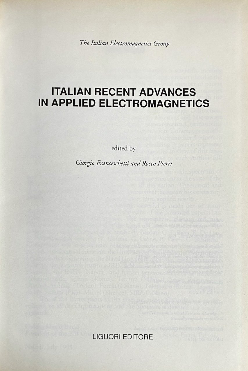 ITALIAN RECENT ADVANCES IN APPLIED ELECTROMAGNETICS | Libros antiguos y modernos | Giorgio Franceschetti, Rocco Pierri, Autori Vari, Giorgio Franceschetti, Rocco Pierri