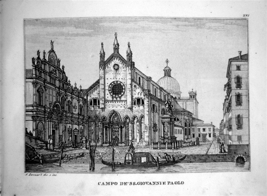 album in-8 (mm. 130x180), pp. 124, leg. m. tela coeva con piatti fig. Con 32 belle tavv. inc. in rame e firmate in lastra dal Lazzari. Ogni tav. è preceduta da una succinta descrizione. Ai piatti sono applicate due vedute di Venezia con il titolo "XXXII vedute principali di Venezia". Cicogna 4494. Picc. dif. al d., ma ottimo esempl. Raro. [MM1-071]