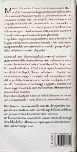 March 2012: while the country is in full recession (technique), the Foreign Ministry repeated diplomatic crises and facing the team of Napoli "passes" in London in despair a whole city . a handful of brave Neapolitans moves to "Alt'Italia" the conquest of the snows and immediately meets. a sadist ski instructor who subjects them to horrendous torture: from the cable car to the shower naked in the snow cannons up to climb barefoot on icy slopes. The Neapolitans react adequately, immediately founded "antifatichiste brigades": they capture the cruel Armin von Korrentropp luring him with malice in a trap-handing him the gift of beer "correct" the guttalax. Dino Falconio's prose is the author of tradition. The taste of the quotation ends in a blender that puts beside the Prince De Curtis and Balu, the brothers Dahl with the Italian comedy of Banfi and Montagnani, Massimo Troisi with the Ultras of Naples, Plautus with Fantozzi.