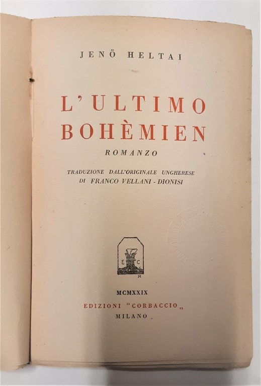 Jeno Heltai L'ultimo bohemien romanzo Corbaccio 1929