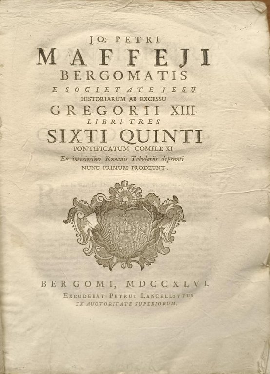 JO. PETRI MAFFEJI BERGOMATIS E SOCIETATE JESU. HISTORIARUM AB EXCESSU GREGORII XIII. LIBRI TRES SIXTI QUINTI PONTIFICATUM COMPLEXI EX INTERIORUBUS ROMANIS TABULARIIS DEPROMTI ...