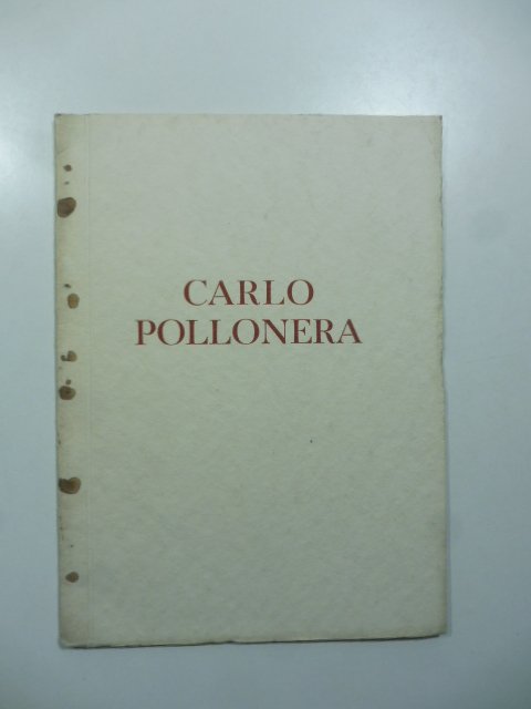 In 16 (cm 13 x 18), pp. (20) con 3 tavole finali con riproduzioni di opere in bianco/nero. Macchiette in corrispondenza del dorso su entrambi i piatti della copertina (causa ossidazione dei punti metallici della legatura). Catalogo delle mostra di Carlo Pollonera nel maggio 1934 alla galleria di Luigi Adone Scopinich a Milano. Comprende: note biografiche relative all'artista, alcuni giudizi di critici sulla sua arte, elenco delle opere esposte e le 3 tavole finali. Carlo Pollonera (1849-1923) fu allievo prima del Gastaldi e di Alberto Maso Gilli, poi di Fontanesi all'Accademia Albertina a Torino, e fu a Parigi nel 1875. All'inizio tratto' la figura, poi si dedico' quasi esclusivamente al paesaggio. Nel 1926 la Biennale di Venezia gli allesti' una mostra commemorativa, segue questa importante mostra alla Galleria Scopinich.