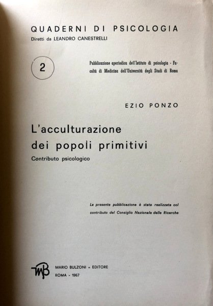 L'ACCULTURAZIONE DEI POPOLI PRIMITIVI. CONTRIBUTO PSICOLOGICO. | Libros antiguos y modernos | Ezio Ponzo