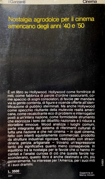 È un libro su Hollywood. Hollywood come fornitrice di miti, come fabbrica di parole d'ordine rassicuranti, come spaccio di sogni consolatori, di favole per mandare via la gente contenta, di figure e vicende offerte all'identificazione di pubblici sterminati. Ma anche Hollywood come specchio riluttante della mutevole realtà americana, come recalcitrante eco di problemi e interrogativi posti a un'intera nazione, come formidabile strumento che esorcizza i temi del dibattito nazionale e li riduce a storielline innocue. Wood analizza i luoghi comuni, parte integrante del sistema di riferimenti culturali di tutta una nazione e che nel cinema - in quel cinema, fatto con intenti squisitamente commerciali, prodotto da strutture industriali rigorose, realizzato con straordinaria perizia artigianale trovano un'espressione tanto più significativa quanto meno consapevole. In equilibrio tra la nostalgia per le favole che ci hanno in cantati e l'analisi curiosa di ciò che queste favole nascondevano, questo libro è anche destinato a chi, più generalmente, ha interesse per l'America, per i suoi miti e i suoi drammi.