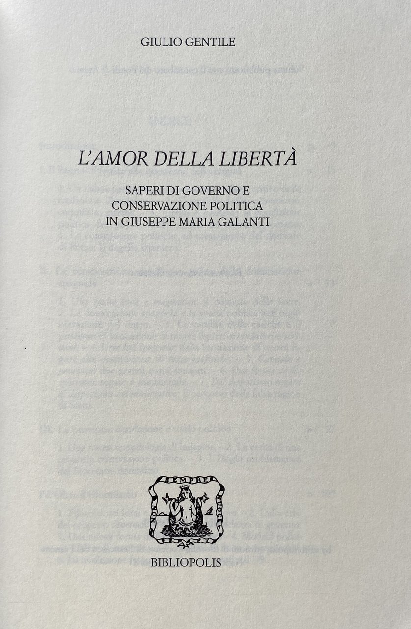 L'AMOR DELLA LIBERTÀ. SAPERI DI GOVERNO E CONSERVAZIONE POLITICA IN GIUSEPPE MARIA GALANTI | Libros antiguos y modernos | Giulio Gentile