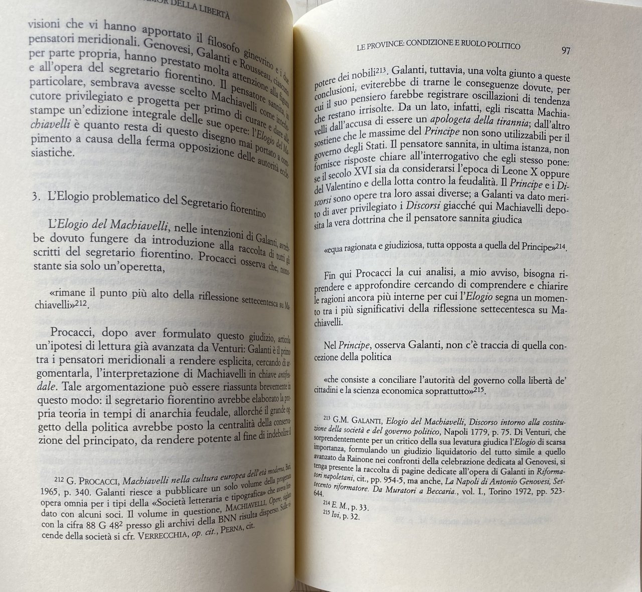 Soggetti: Biografie, Illuministi napoletani, Pensiero politico, Settecento, Economisti, Liberalismo, Diritto Amministrativo Arti Baroni Capitale Ceto Viceregno Illuminismo Intellettuali Città Cittadini Civile Classi Conquista Costituzione Cominio Economia Felicità Ferdinando il Cattolico Feudale Filosofia Forense Formazione Domenico Francescantonio Grimaldi Francesco Mario Pagano Melchiorre Delfico Antonio Jerocades Antonio Genovesi Giudici Giustizia Governo Guerra Interesse Istituzioni Lavoro Leggi Machiavelli Magistrati Meridionale Ministri Monarchia Regno di Napoli Natura Nazione Nobiltà Ordine Patria Pensatore sannita Politica Potere Principi Principe Processo Province Ragione Razze Regole Repubblica Riferimento Riformatore Romani Scienza Scuole Sistema sociale Società Sovrano naturale Dominazione Spagnola Spirito Storia Tribunali Virtù Sovranità Scienza Libri fuori catalogo Monografie Scritti politici Dottrine Bibliografia Collezionismo Elogio storico del signor abate Censura Stato Voltaire Chiesa Metafisica Società letteraria e tipografica Meridionalismo Sud Italia Benevento Sanniti Molise Protostoria Descrizione Feudalesimo Campagne Monarchia Borbone Progresso Massoni Bonifica Paludi Zone montuose Carcerati Amministrazione Fisco Catasto Bilanci Feudalità John Acton Finanze Gaetano Filangieri Palmieri Ferdinando IV Rivoluzione Magistratura Corona Repubblica Napoletana 1799 Sanfedisti Giuseppe Bonaparte Contado Sicilie viaggio Calabria Memorie storiche Franco Venturi Riformatori Gaetano Melzi Daniela Ciccolella Corrado Rainone Avvocati Riformismo Giurisdizione Dispotismo togato e ministeriale Galiani Anton Friedrich Busching Geografia Procacci Andrea D'Isernia Foro Privilegi Devoluzione Codice Rendita Redditieri Abruzzo Vincenzo Cuoco N. Cortese Massoneria Baronaggio Ducati Biographies, Neapolitan Enlightenment, Political thought, Eighteenth century, Economists, Liberalism, Administrative Law Arts Barons Capital Class Viceroyalty Enlightenment Intellectuals City Citizens Civil Classes Conquest Constitution Cominio Economy Happiness Ferdinand the Catholic Feudal Forensic Philosophy Training Judges Justice Government War Interest Institutions Work Laws Southern Magistrates Ministers Monarchy Kingdom of Naples Nature Nation Nobility Order Homeland Samnite thinker Politics Power Principles Prince Trial Provinces Reason Races Rules Republic Reference Reformer Romans Science Schools Social system Society Natural sovereign Spanish Domination Spirit History Courts Virtues Sovereignty Science Out of print books Monographs Political writings Doctrines Bibliography Collectibles Historical praise of the abbot Censorship State Church Metaphysics Literary typographical society Southern Italy Southern Italy Protohistory Description Feudalism Campaigns Monarchy Charles Bourbon Progress Freemasons Drainage Swamps Mountainous areas Prisoners Administration Tax Land Registry Budgets Feudality Ferdinand IV Revolution Judiciary Crown Neapolitan Republic Sanfedists Sicily travel Historical memories Reformers Lawyers Reformism Jurisdiction Despotism robed ministerial Geography Court Privileges Devolution Code Income Income Freemasonry Baronage