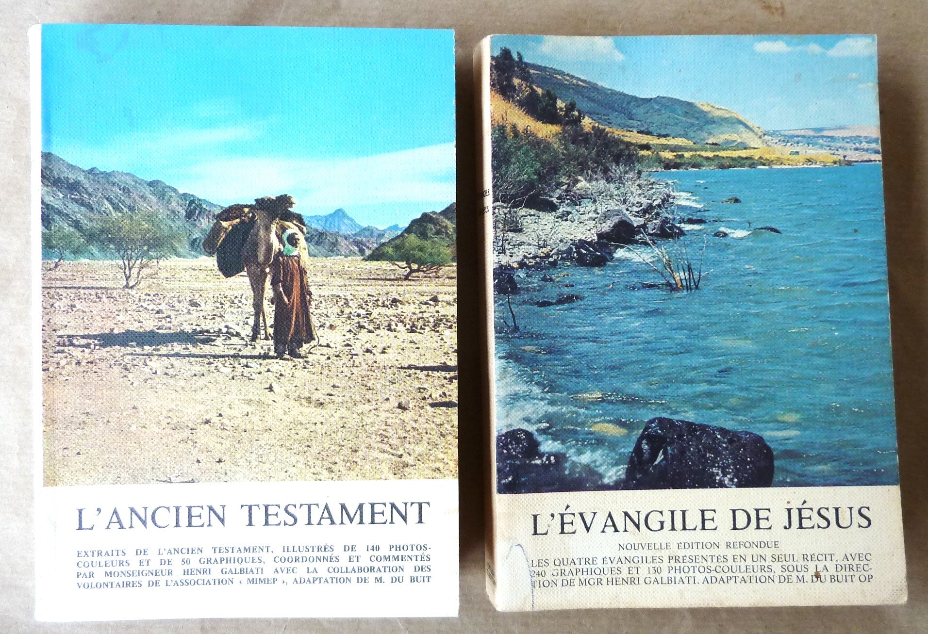 Ensemble de deux volumes de format petit in 8° carré de : - pour L'Ancien Testament; 480 pp.; 140 reproductions en couleurs; 50 graphiques; couverture illustrée; - pour L'Evangile de Jésus; 416 pp; 130 reproductions en couleurs; 240 graphiques; couverture illustrée. Les deux volumes en bel état. Voir les photographies.