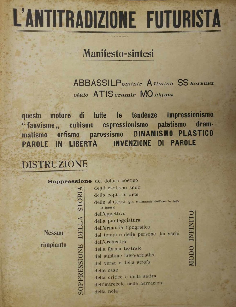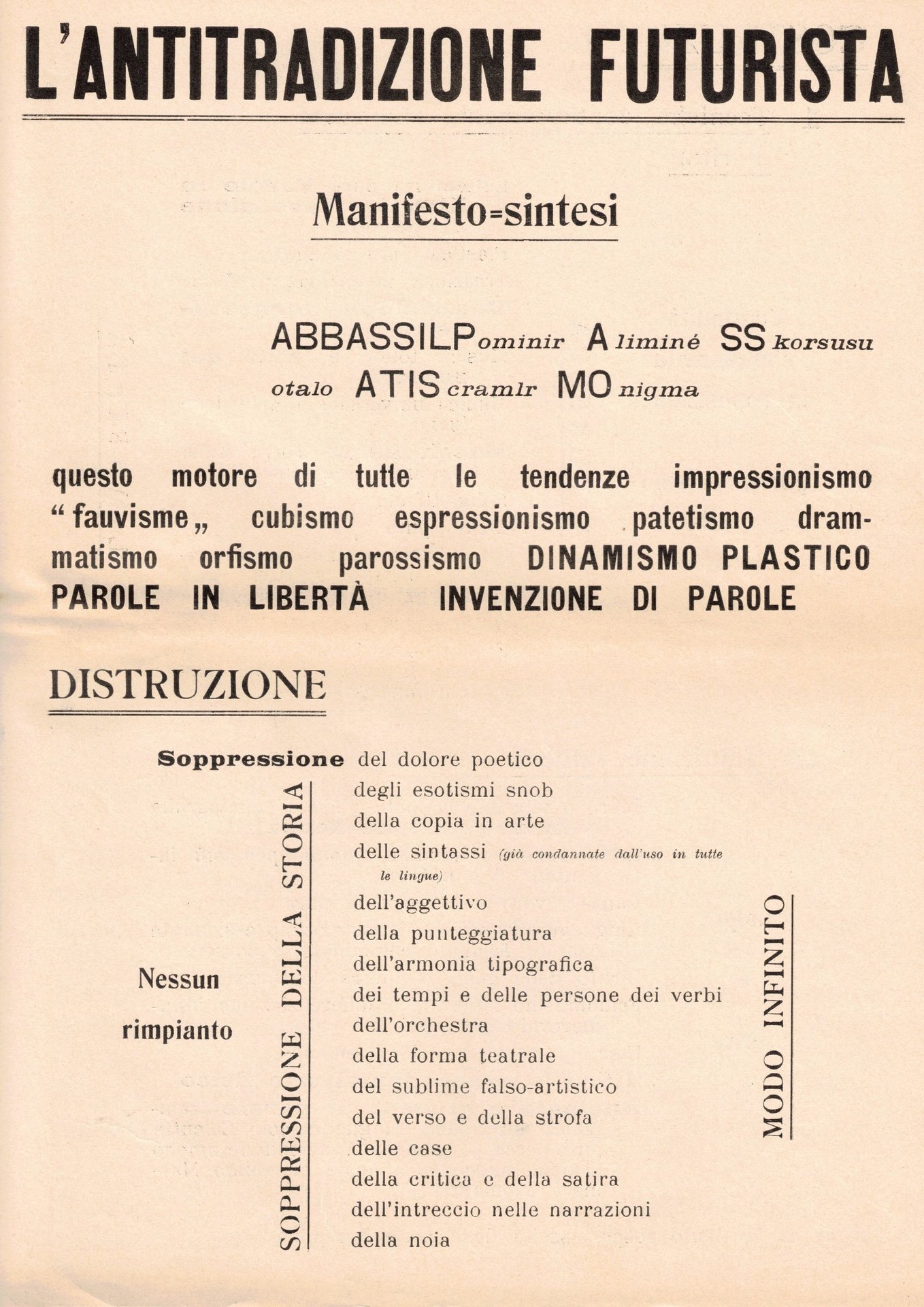L'ANTITRADIZIONE FUTURISTA. MANIFESTO=SINTESI.