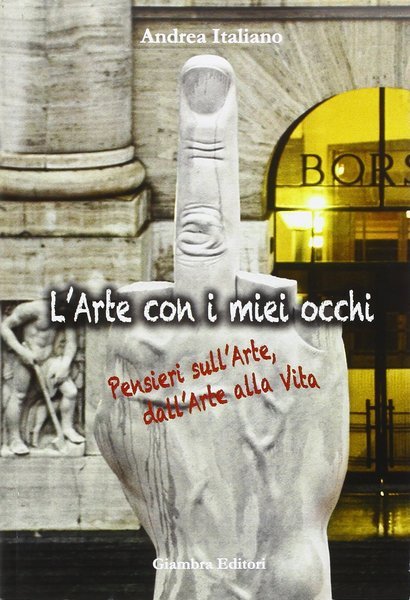 Leggere “L’Arte con i miei occhi” è un viaggio artistico e casuale, un dialogo senza tempo tra passato e presente che si snoda e prende vita tra i punti nevralgici ed opposti della storia dell’arte mondiale tra inconsueti ed acuti accostamenti, tra la quiete e la tempesta, tra il maschio e la femmina, tra il sacro ed il profano, tra la preghiera ed il paganesimo più classico: dagli inizi di Giotto al dissacrante Cattelan, dai Crocifissi di Giunta Pisano al Cretto di Burri, dagli artisti ignoti a chi un nome ce l’ha ed è troppo invadente, dal bronzo al marzo, da Piero Manzoni ad Annibale Carracci.