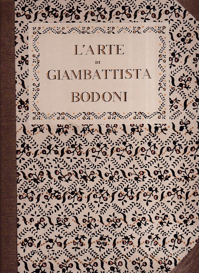 In-4° (330x240mm), pp. 173 + 25 tavv. impresse al solo recto di 'Monumenti tipografici bodoniani', con legenda esplicativa nella pag. a fronte. 66 illustrazioni n.t. Legatura editoriale m. tela e angoli con piatti in cartone decorato a motivi floreali e vegetali di tipo settecentesco con titolo a stampa entro tassello. Ottimo esemplare. Importante studio sull'arte tipografica di Bodoni.
