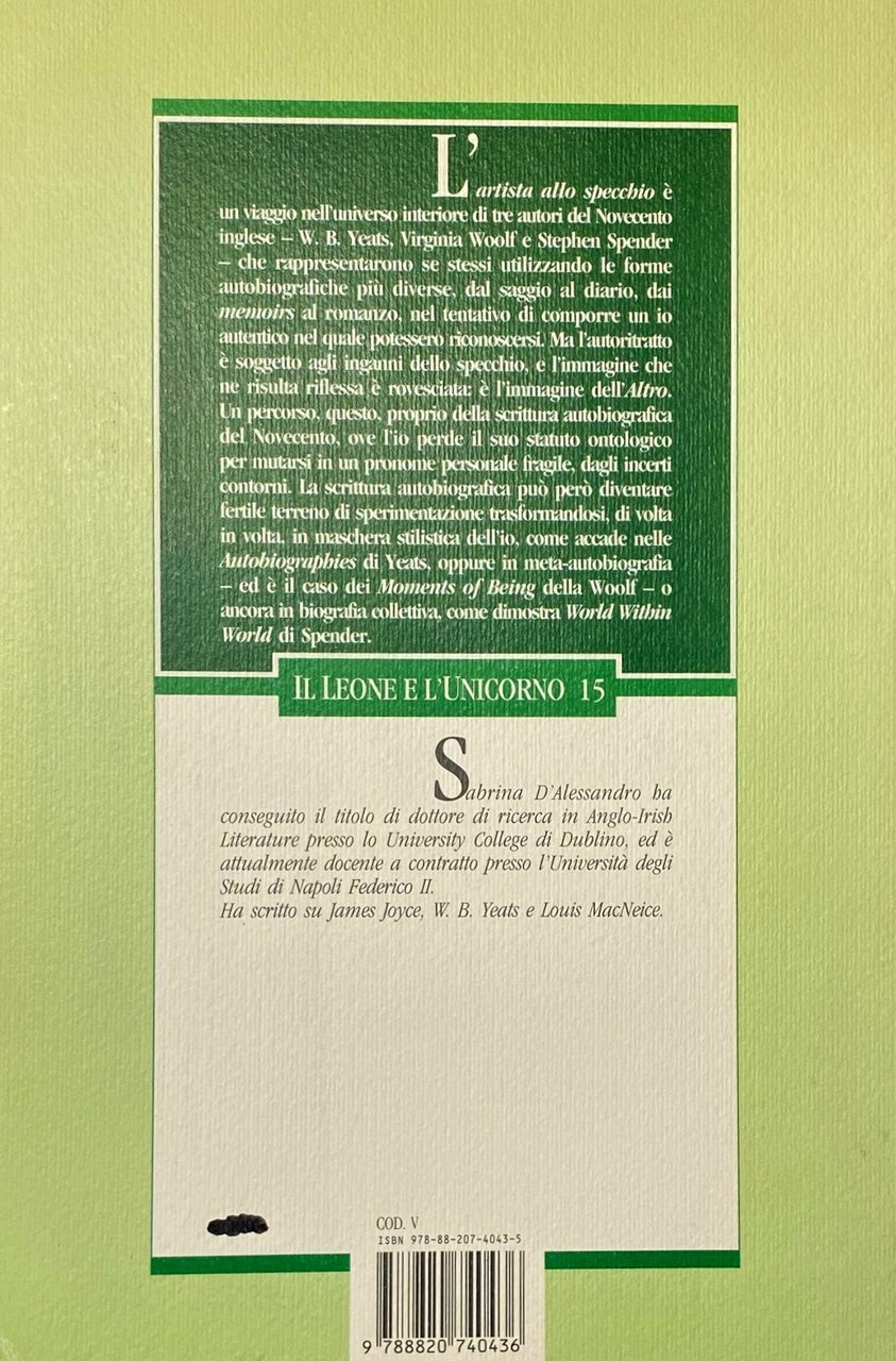 L'artista allo specchio è un viaggio nell'universo interiore di tre autori del Novecento inglese. W. B. Yeats, Virginia Woolf e Stephen Spender che rappresentarono se stessi utilizzando le forme autobiografiche più diverse, dal saggio al diario, dai memoirs al romanzo, nel tentativo di comporre un io autentico nel quale potessero riconoscersi. Ma l'autoritratto è soggetto agli inganni dello specchio, e l'immagine che ne risulta riflessa è rovesciata: è l'immagine dell' Altro. Un percorso, questo, proprio della scrittura autobiografica del Novecento, ove l'io perde il suo statuto ontologico per mutarsi in un pronome personale fragile, dagli incerti contorni. La scrittura autobiografica può però diventare fertile terreno di sperimentazione, trasformandosi di volta in volta, in maschera stilistica dell'io, come accade nelle Autobiographies di Yeats, oppure in meta-autobiografia, ed è caso dei Moments of Being della Woolf, o ancora in biografia collettiva, come dimostra World Within World di Stephen Spender.
