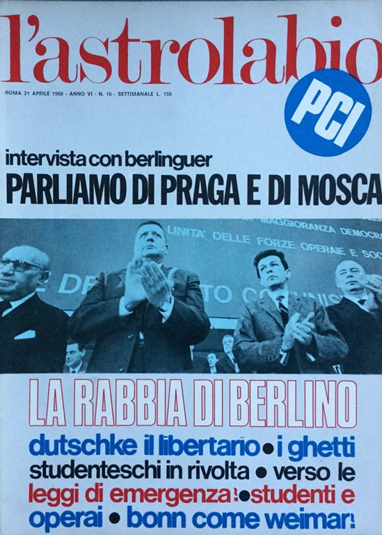 L'Astrolabio settimanale 21 aprile 1968. Praga Mosca Berlino rivolta studentesca