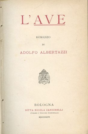 In-8°, pp. (6), 495, (2), legatura del tempo t. tela con titolo in oro al dorso. Frontespizio impresso in rosso e in nero. Ottimo esemplare esente da fioriture. Edizione originale, rara, del maggiore romanzo dell'Albertazzi (Bologna, 1865-Castel San Pietro Terme, 1924), scrittore definito da Giovanni Papini, solitamente parco di tali elogi ai suoi contemporanei, 'uno dei pochi prodigi della vivente letteratura italiana'. Discepolo e biografo del Carducci, storico della nostra letteratura (celebri la sua monografia Il Romanzo e le biografie del Foscolo e del Tasso), dette il meglio della propria vena narrativa nelle novelle, spesso ricalcate sul grande modello di Maupassant.