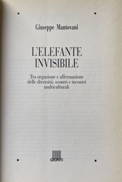 L'ELEFANTE INVISIBILE. TRA NEGAZIONE E AFFERMAZIONE DELLE DIVERSITÀ SCONTRI E INCONTRI MULTICULTURALI | Libros antiguos y modernos | Giuseppe Mantovani