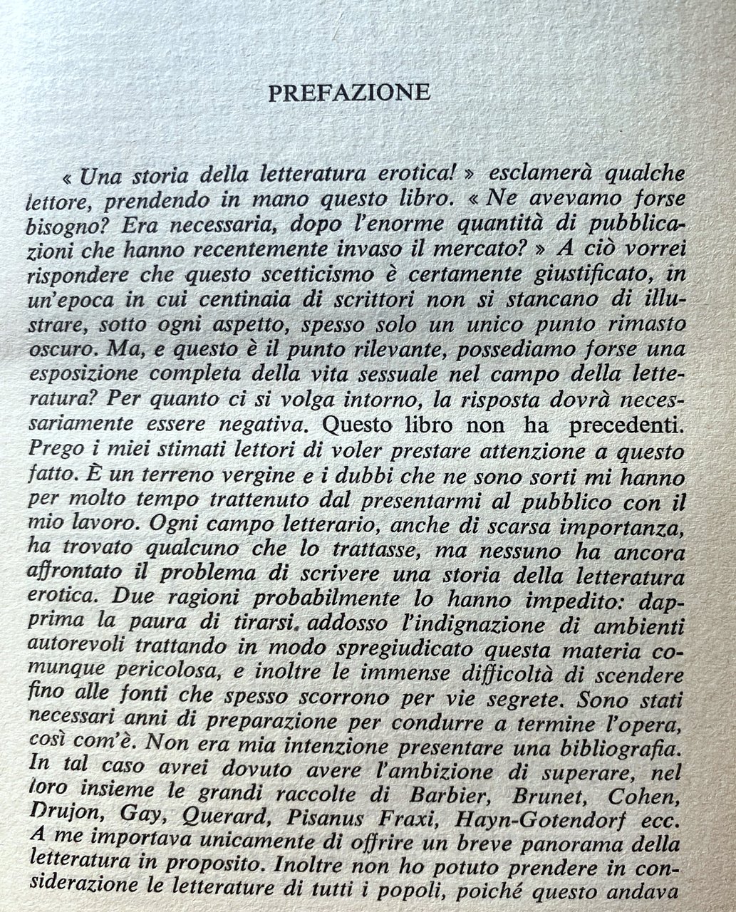 Soggetti: Letteratura erotica comparata Erotismo Sessuologia Sessualità Seduzione Amore Proibito Pornografia Narrativa Romanzi erotici Donne Diavoli Le vergini funeste Giancarlo Marmori Critica letteraria Collezionismo Illustrazioni vintage Iconografia Fantasia Fantasie sessuali Sesso Immaginazione Feticismo Testi classici La contessa sanguinaria Valentine Penrose Una modesta proposta Jonathan Swift Saggistica Bizzarro Erotico Fantastico Orrido Caricature Ritratti Fumetti Cartoni Moderna Contemporanea Medievale Medioevo Umanesimo Rinascimento Bibliografia Riferimento Consultazione Manuali Opere Psicanalisi Psicologia Relazioni Uomini Abiti Oggetti Piedi Studi critici culturali Pornographie Grafica Casanova Farse Trovatori Didattica Satira Nonsense Età d'oro Anticlericale Raccolte Poesie Poemi Prostitute Teatro Piccante Sentimentale Colportage Perversità Club erotici Erotisti Voltaire Crebillon der Jüngere Choderlos de Laclos Louvet Couvray Mirabeau Musset Marchese Sade Restif de la Bretonne Travestimento letterario Illustrazione erotica Théophile Gautier Stendhal-Beyle Victor Hugo Flaubert Verlaine Baudelaire Editoria Stampa Italia Proverbi Aretino Scuola Alessandro Piccolomini Niccolo Franco Ferrante Pallavicino Restaurazione Censura Grecia Roma Germania Winileod Epica popolare Devozione mariana Chiesa Volksepik Roswitha Matrimonio Rapporti sessuali liberi Fede Streghe Clero immorale Maleducazione Sermoni Pulpito Volgarità Oscenità Libri popolari Giochi Carnevale Confessionali Trattati morali Attori Devozionale Inni Hochzeitskarmina Riforma Canzoni Galanteria Corteggiamento Romanzo erotico Intrattenimento Vienna Finzione Pulp Horror Kitsch Stampe private Pubblicità erotica Francia Culto Vergine Maria Fabliaux Storia Parigi Genere Generi letterari Vergini Araba Mille e una notte Harem Ovidio Ars amatoria Apuleio Favole Asino Cibo Memorie Afrodite Lussuria Borghese Carne Corpo Nudità Costumi Crimine Cristianesimo Lawrence Diavolo Simboli Fallici Fanny Hill Giudaismo Iside Justine Kamasutra Labourd Laclos Libertà Libertinaggio Libertini Mazdeismo Mistero Mistica Mito Moglie Morale Morte Natura Potere Priapo Pudore Racconto Religione Riti Rituali Sacralità Sacro Satana Sessuofobia Società Socrate Sodoma Sposa Sudditi Tabù Trasgressione Vatsyayana Violenza Sadomasochismo Sidonie-Gabrielle Colette Henry Miller Gabriele D'Annunzio Piacere fisico Estetica Tanizaki Jun'ichiro Teleny Algernon Swinburne Lesbismo Omosessualità Venere in pelliccia Sacher-Masoch Peccato Caning Paddling Punizione corporale Pederastia Ragazzi Josefine Mutzenbacher Undicimila verghe Don Giovanni Galateo Fanciulle Pierre Louÿs Louis Aragon Occhio Georges Bataille André Gide Corydon Histoire d'O Dominique Aury Pauline Réage Emmanuelle Arsan Satyricon Petronio Arbitro Decameron Boccaccio Incesto Catullo Saffo Properzio Giovenale Orge Alexander Pope Arthur Rimbaud Mallarmé Manet Patrizia Valduga Fedeltà coniugale Erodoto Makamen Sensi Imru l-Qays Moda Gusto Avventure Passioni Incisioni Frivolezze Dizionario Eugen Dühren Das Geschlechtsleben Bonneau Aristofane Doppio senso Scurrilità Karl Reiskel Forberg Apophoreta Richelot De Radier Cabinet secret Glossario Macrobe Gay Girard De Propiac Grottesco Raffaello Dipinti Pittura Wolff Eccitazione Ivan Bloch Guillaume Apollinaire Fleuret Louis Perceau Pisanus Fraxi Effusioni Adolescenti Berceau Frivola Tradimenti Amanti Burlesco Baumgartner Ballo Maschera Erotik Liebesleben Comparative literature Eroticism Sexology Sexuality Seduction Forbidden love Pornography Fiction Erotic novels Women Devils Literary criticism Collectibles Illustrations Iconography Fantasy Sexual fantasies Imagination Fetishism Classical texts The bloody countess Non-fiction Bizarre Fantastic Horrid Caricatures Portraits Comics Cartoons Contemporary Medieval Middle Ages Humanism Renaissance Bibliography Reference Consultation Manuals Works Psychoanalysis Psychology Relationships Men Clothes Objects Feet Cultural studies Pornography Graphics Farces Troubadours Teaching Satire Golden age Anticlerical Collections Poems Prostitutes Theater Spicy Sentimental Colportage Perversity Eroticists Disguise Publishing Press Italy Proverbs School Restoration Censorship Greece Rome Germany Popular epic Marian devotion Church Marriage Free relations Faith Witches Immoral clergy Bad manners Sermons Vulgarity Obscenity Books popular Games Carnival Confessionals Moral Treatises Actors Devotional Hymns Reformation Songs Gallantry Courtship Novel Entertainment Fiction Private Prints Advertising France Cult Mary History Paris Genre Literary Genres Virgins Arab One Thousand One Nights Ovid Apuleius Fables Donkey Food Memoirs Aphrodite Lust Bourgeois Flesh Body Nudity Customs Crime Christianity Devil Phallic Symbols Judaism Isis Freedom Libertinism Libertines Mazdaism Mystery Mysticism Myth Wife Death Nature Power Priapus Modesty Story Religion Rites Rituals Sacredness Sacred Satan Sexophobia Society Socrates Sodom Bride Subjects Taboo Transgression Violence Sadomasochism Physical Pleasure Aesthetics Lesbianism Homosexuality Venus in Furs Sin Corporal Punishment Pederasty Boys Eleven Thousand Rods Etiquette Maidens Eye Petronius Arbiter Incest Catullus Sappho Propertius Juvenal Orgies Marital fidelity Herodotus Senses Fashion Taste Adventures Passions Engravings Frivolities Dictionary Aristophanes Double entendre Scurrility Glossary Grotesque Paintings Painting Excitement Effusions Adolescents Frivolous Betrayals Lovers Burlesque Dance Mask Orgy Libri fuori catalogo Out of print Books