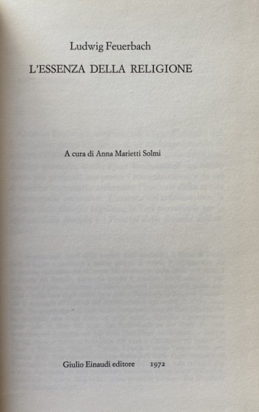 L'ESSENZA DELLA RELIGIONE. A CURA DI ANNA MARIETTI SOLMI | Libros antiguos y modernos | Ludwig Feuerbach