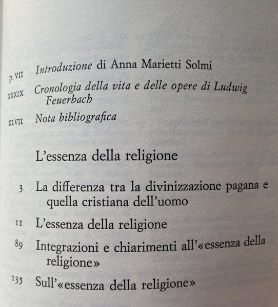 Soggetti: Filosofia, Classici, Pensiero filosofico, Umanesimo ateo, Religione antropologica, Critica positiva, Religione, Essenza del Cristianesimo, Materialismo antropologico, Contemporanea, Ottocento, Religioni, Teologia, Interpretazione, Saggistica, Verità, Fede, Die Epigonen, Sämmtliche Werke, Miracoli, Umanità, Natura, Vita, Esistenza, Credere, Soprannaturale, Correnti filosofiche, Positivismo, Esistenzialismo, Marxismo, Individualismo, Protestantesimo, Etica protestante e cattolica, Dialoghi, Problema teologico, Dottrina positiva, Essenza divina, Karl Barth, Sinistra hegeliana, Jena, Kiel, Heidelberg, Germania, Filosofi tedeschi, Fede, Osservanza religiosa, Carl Daub, Heinrich Paulus, Spiritualità, Pratica religiosa, Metafisica, Christentums, Vorlesungen über das Wesen der Religion, The Essence of Religion, Religionsverständnis, Religion liegt nicht allein im Menschen, Verhältnis des Menschen zu der von ihm unabhängigen Natur, Christianity, Grund, Dependence of human beings, Klarheit, Einfachheit, Bestimmtheit, Gegenstand, Meinen Schriften, Scritti religiosi, Libri Vintage Fuori catalogo, Edizioni pregiate, Libri usati, Tesi provvisorie, Karl Lowith, Paganesimo, Divinizzazione pagana, Bibliografia, Riferimento, Testi filosofici, Clero, Chiesa, Preti, Mediazione, XIX secolo, Theogonie, Teogonia, Bertha Löw, Sacrificio, Peccato, Philosophy, Classics, Philosophical thinking, Atheist humanism, Anthropological religion, Positive criticism, Religion, Essence of Christianity, Anthropological materialism, Contemporary, Nineteenth century, Religions, Theology, Interpretation, Nonfiction, Truth, Faith, Miracles, Humanity, Nature, Life, Existence , Believe, Supernatural, Philosophical currents, Positivism, Existentialism, Marxism, Individualism, Protestantism, Protestant and catholic ethics, Dialogues, Theological problem, Positive doctrine, Divine essence, Hegelian left, Germany, German philosophers, Faith, Religious observance, Spirituality, Practice religious, Metaphysics, Religious writings, Out of print books, Fine editions, Used books, Provisional theses, Paganism, Pagan divinization, Bibliography, Reference, Philosophical texts, Clergy, Church, Priests, Mediation, XIX century, Theogony, Sacrifice, Sin