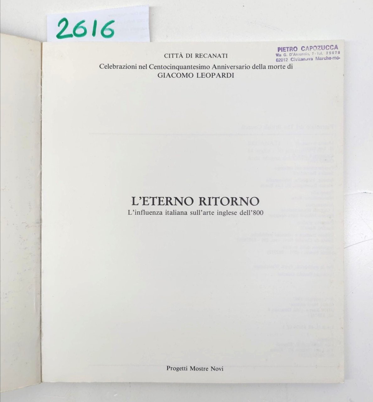 L'eterno Ritorno L'influenza Italiana Sull'arte Inglese Dell'800 Novi 1987