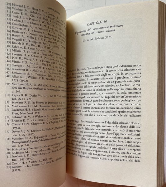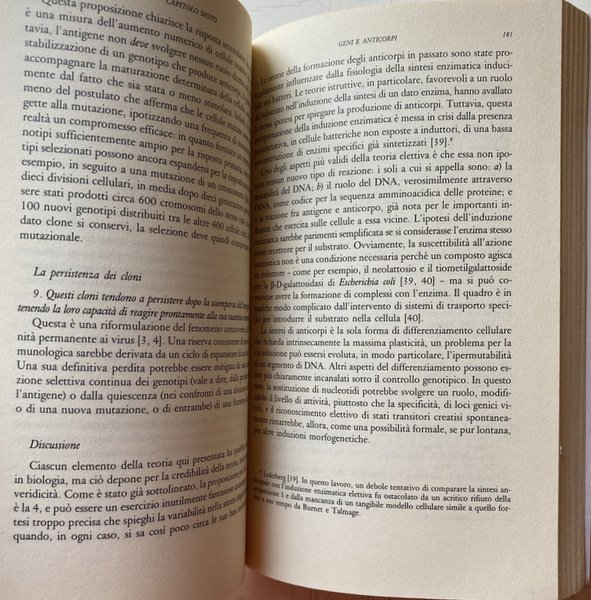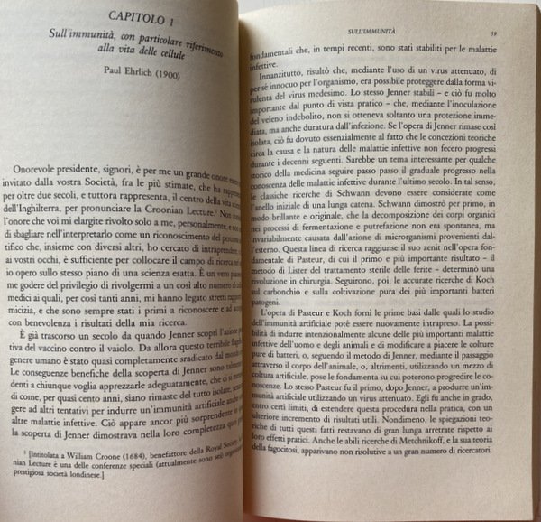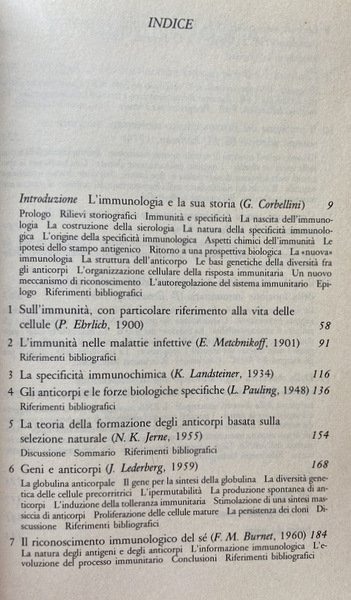 Soggetti: Medicina, Immunologia, Epistemologia medica, Ricerca scientifica, Biologia molecolare, Bioetica, Scienze mediche, Tecnologia, Psicologia, Neuroscienze, Malattie autoimmunitarie, Sistema immunitario, Sangue, Ereditarietà, Scienza, Globuli rossi, Sistema sanguigno, Circolazione, Disturbi, Saggi Scientifici, Storia, Divulgazione scientifica, Scoperte, Ingegneria Genetica, Difese immunitarie, Corpo umano, Immunità, Fisiologia, Interazioni cellulari, Anticorpi, Trasmissione, Proteine, Selezione naturale, Globuline, Teorie, Geni, DNA, Cloni, Antigeni, Sintesi proteica, Malattie infettive, Tolleranza immunitaria, Rigetto, Trapianti, Riferimenti bibliografici, Bibliografia, Riferimento, Letteratura scientifica, Consultazione, Raccolte, Papers, Patologia, Risposta immunitaria, Virologia, Clinica, Teoria di Jerne, Selezione clonale, Embriogenesi, Gruppi sanguigni, Processi epigenetici, Batteriologia, Istologia, Chimica, Oncologia, Chemioterapia, Robert Koch, Sifilide, Salvarsan, Sierologia, Reazioni antigene-anticorpo, Alexander Wiener, Fattore rhesus, Rh, Sangue, Scuola umorale tedesca, Pasteur, Koelliker, Cohn, Leuckart, Linea somatica, Tumori, Virus, Batteri, Fagocitosi, Monoclonali, Anemia falciforme, Linfociti, Aptene, Bordet, Agglutinazione, Allele, Allergie, Anafilassi, Allotipi, Amminoacidi, Istamina, Kohler, AB0, Forssmann, Tossine, Legami, Infiammazioni, Arthus, Staminali, Blasto, RNA, Hieronymus Fabricius, Borsa di Fabrizio, Albumine, Catene, Milza, Fegato, Fenner, Automarcatore, Compatibilità, Dialisi, Emolisi, Enzimi, Sindrome di Pfeiffer, Oudin, Idiotipi, Grabar, Coons, Autologo, Fissatore, Naturali, Lisina, Linfonodi, Linfa, Sistema linfatico, MHC, Microsomi, Memoria immunologica, Mieloma, Midollo osseo, Bence-Jones, IgE, Reagina, Ricettori, Ospite, Cure, Terapie, Risposta, SRBC, Vaccini, Avery, Behring, Heidelberger, Nossal, Nisonoff, Talmage, Libri Vintage Fuori catalogo, Jenner, Vaiolo, Tubercolosi, Tubercolina, AIDS, Schwann, Glossario, Novecento, Progresso scientifico, Nuttal, Belfanti, Carbone, Medicine, Immunology, Medical epistemology, Scientific research, Molecular biology, Bioethics, Medical sciences, Technology, Psychology, Neuroscience, Autoimmune diseases, Immune system, Blood, Inheritance, Science, Red blood cells, Blood system, Circulation, Disorders, Scientific essays, History , Scientific dissemination, Discoveries, Genetic engineering, Immune defenses, Human body, Immunity, Physiology, Cell interactions, Antibodies, Transmission, Proteins, Natural selection, Globulins, Theories, Genes, Clones, Antigens, Protein synthesis, Infectious diseases, Immune tolerance, Rejection, Transplants, Bibliographic references, Bibliography, Reference, Scientific literature, Consultation, Collections, Pathology, Immune response, Virology, Clinical, Clonal selection, Embryogenesis, Blood groups, Epigenetic processes, Bacteriology, Histology, Chemistry, Oncology, Chemotherapy, Serology, Antigen-antibody reactions, Blood, German humoral school, Tumors, Bacteria, Phagocytosis, Monoclonal, Sickle Cell Anemia, Lymphocytes, Agglutination, Allergies, Anaphylaxis, Allotypes, Amino Acids, Histamine, Toxins, Bonds, Inflammations, Arthus, Stems, Blast, Bursa, Albumin, Chains, Spleen, Liver, Self-marker, Compatibility, Dialysis, Hemolysis, Enzymes, Syndrome, Idiotypes, Autologous, Fixator, Natural, Lysine, Lymph nodes, Lymph, Lymphatic system, Microsomes, Immunological memory, Myeloma, Bone marrow, Reagin, Receptors, Host, Cures, Therapies, Response, Vaccines, Out of print books, Smallpox, Tuberculosis, Tuberculin, Glossary, Twentieth century, Scientific progress