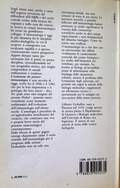L'EVOLUZIONE DEL PENSIERO IMMUNOLOGICO. A CURA DI GILBERTO CORBELLINI